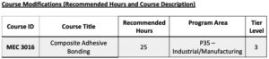 The State Board has approved the following Workforce Continuing Education course for addition or modification in the Combined Course Library. Attached is the detailed information for the course.